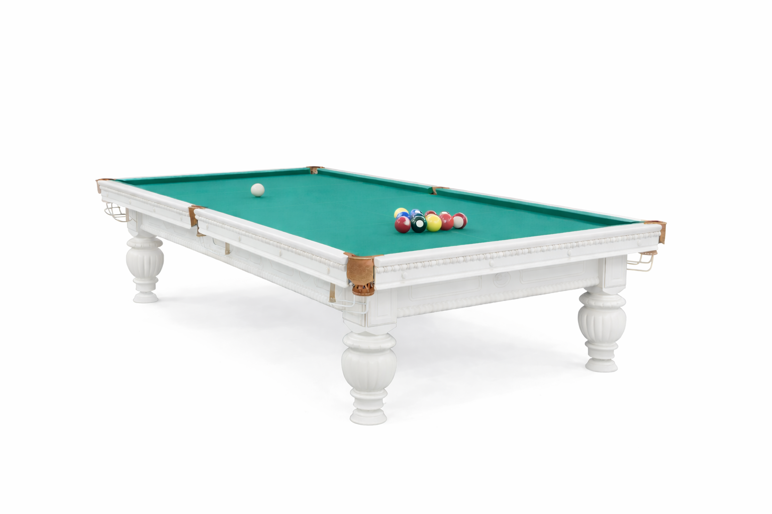• Игровое поле из ардезии. Натуральная сланцевая плита обеспечивает идеально ровную поверхность, стабильность конструкции и точную раскатку шаров, что является обязательным стандартом для профессиональных столов для пула. Ардезия не подвержена деформациям и рассчитана на длительную интенсивную эксплуатацию.