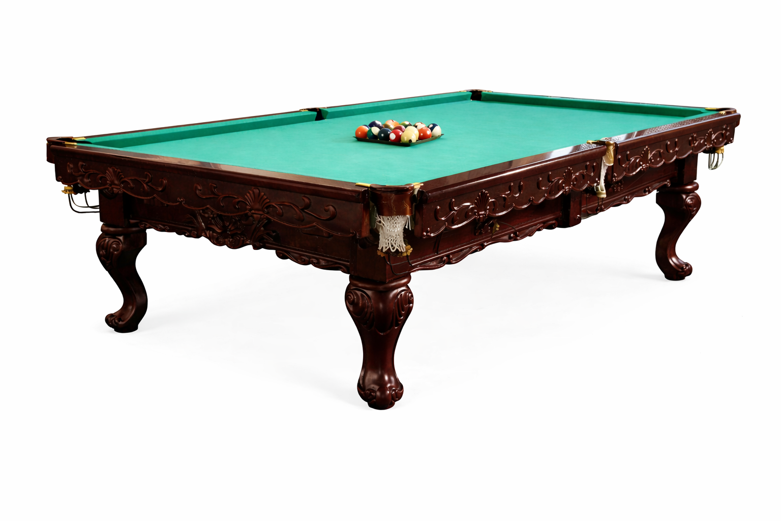 Игровое поле выполнено на натуральной ардезии, которая гарантирует идеально ровную поверхность и сохранение геометрии на протяжении всего срока эксплуатации. Ардезия устойчива к деформациям, перепадам температуры и влажности, что особенно важно для стабильной и точной игры в пул.