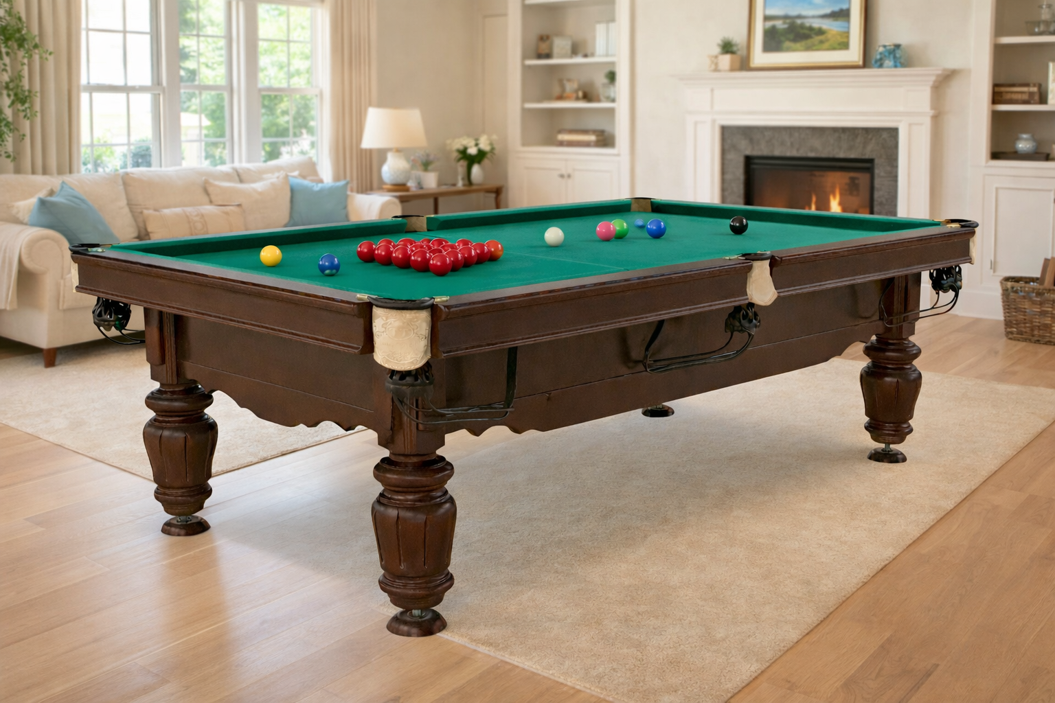 Модель одинаково хорошо подходит как для домашнего использования (квартира, дом, дача, игровая комната), так и для коммерческих пространств — бильярдных клубов, баров, лаунж-зон, отелей, ресторанов и зон отдыха.