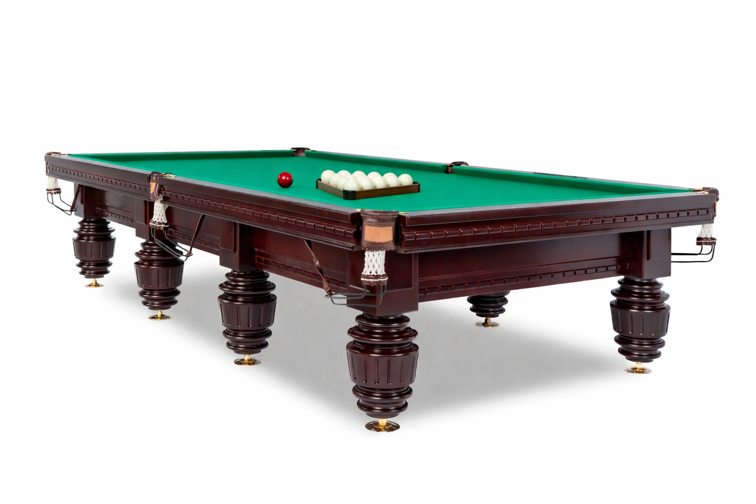 Бильярдный стол для пирамиды Флагман — это солидная модель с выраженным премиальным характером, созданная для ценителей стабильной игры, надежной конструкции и статусного внешнего вида. Стол изготовлен из массива натурального ясеня, оснащён ардезией и профессиональной резиной, что обеспечивает точную геометрию, предсказуемый отскок и комфортную игру как в домашних условиях, так и при интенсивной коммерческой эксплуатации.