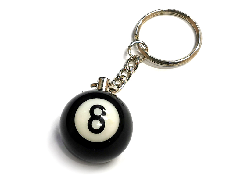 Брелок выполнен из пластика в виде черного шара №8 диаметром 2,5 см.