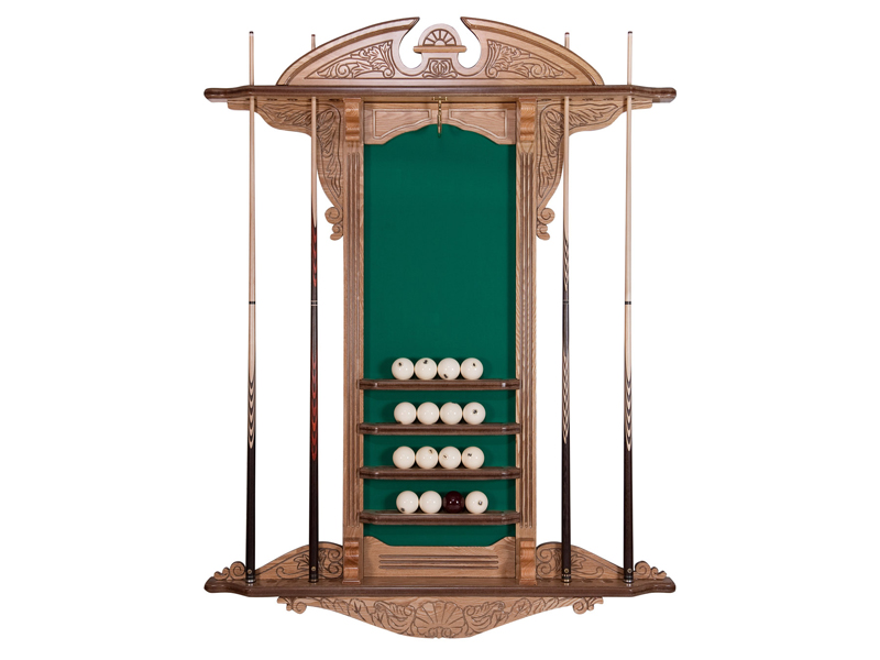 Бильярдная киевница Аристократ, вмещает до десяти киев, комплект шаров, аксессуары и треугольник. Эта стойка позволяет фиксировать кий в вертикальном положении, что предотвращает естественную деформацию бильярдного кия под действием собственного веса. Такая киевница будет выиграшно смотреться в большой бильярдной со столом, с элементами резьбы.
