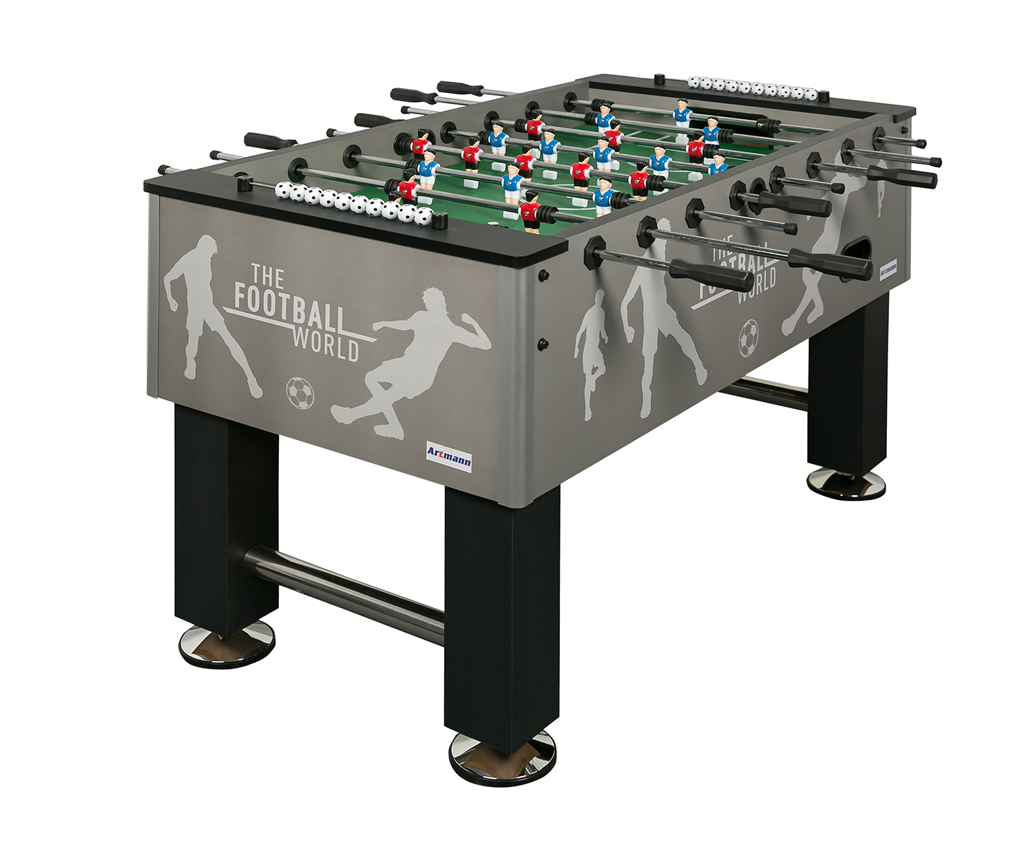 Ноги: квадратной формы 120 х 120 х 15мм МДФ с дополнительной хромированной стальной штангой (придаёт дополнительную устойчивость футболу)