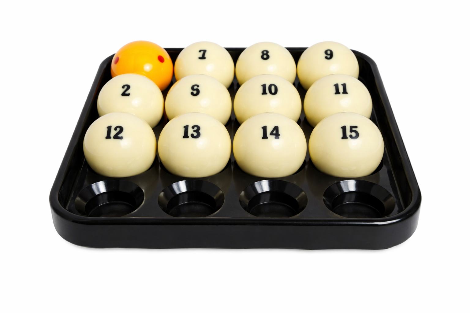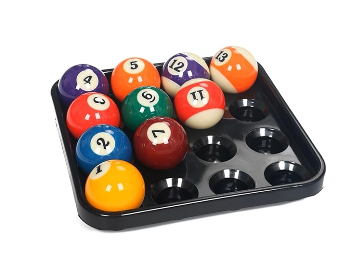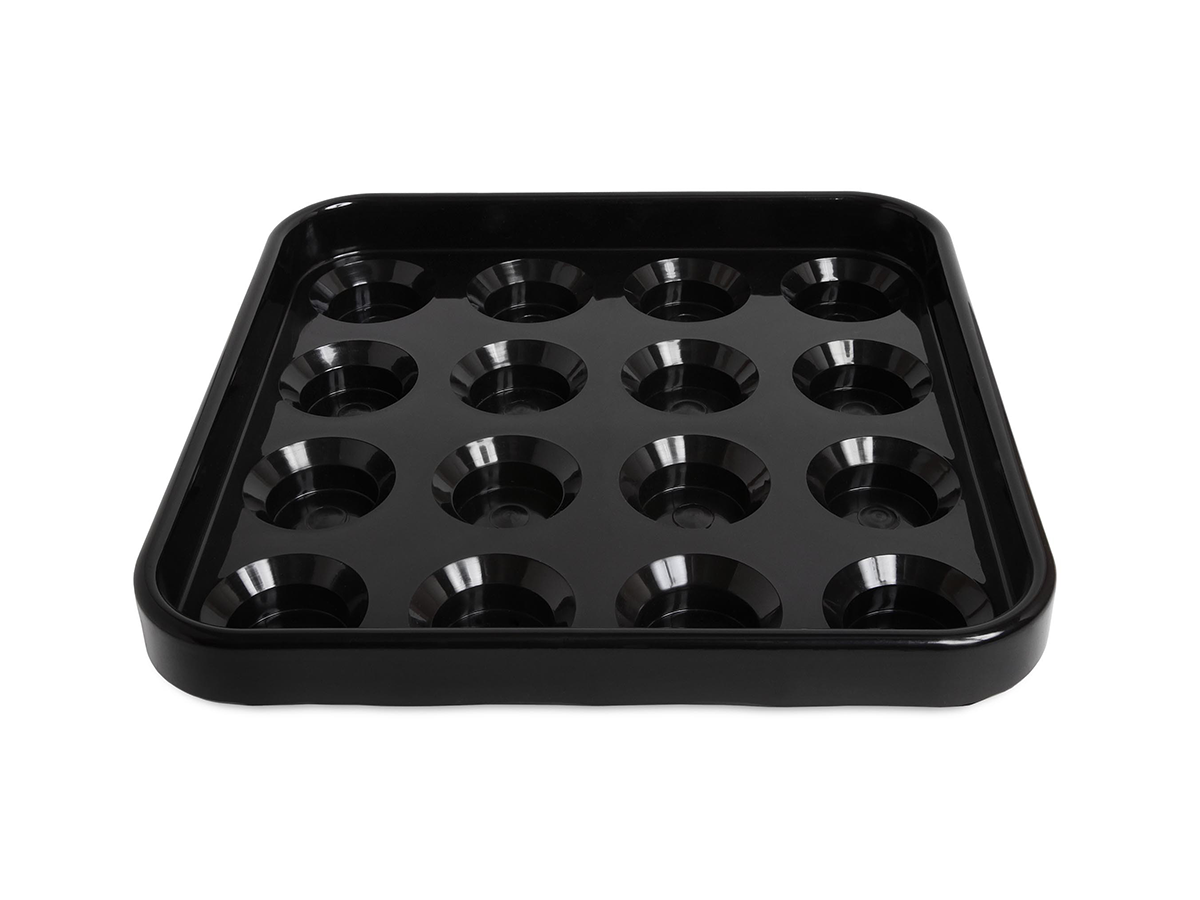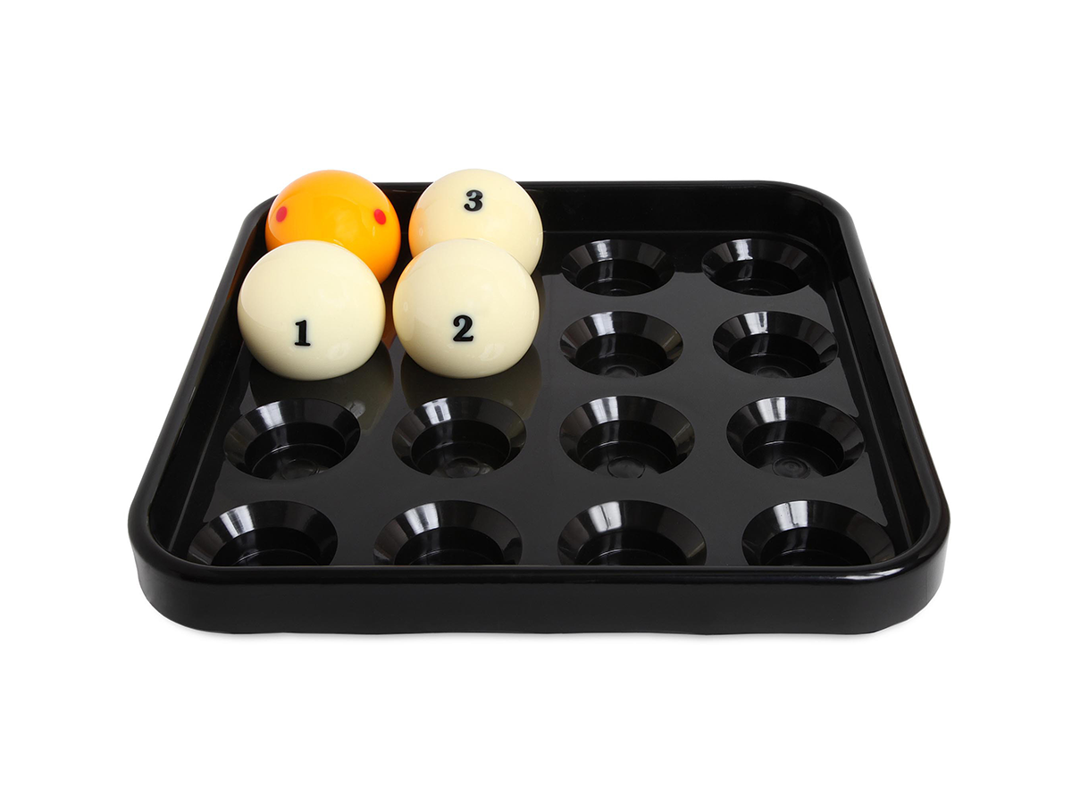 Поддон для хранения бильярдных шаров — удобный аксессуар для аккуратного размещения и хранения комплекта шаров. Позволяет держать шары в порядке, защищает их от повреждений и облегчает организацию игрового пространства в бильярдной комнате или клубе.Поддон изготовлен из прочного материала, устойчивого к износу и длительной эксплуатации. Специальные углубления надежно фиксируют каждый шар, предотвращая их скатывание и соприкосновение друг с другом.