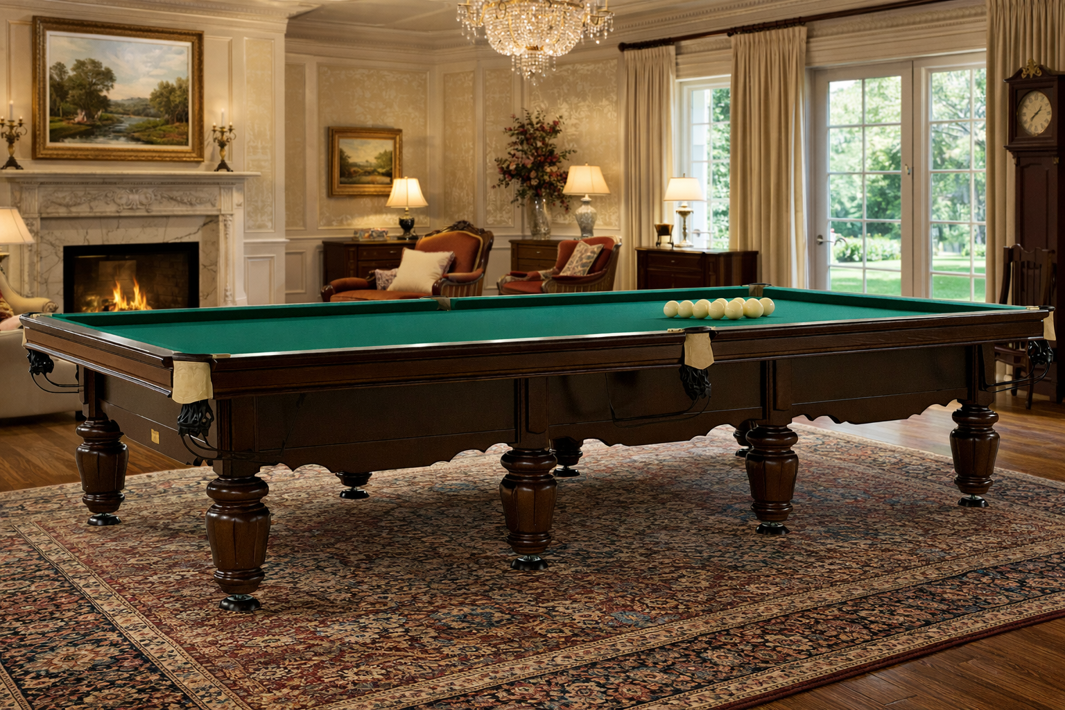 Кам’яна плита забезпечує ідеально рівне ігрове поле, стійкість до деформацій та максимальну точність гри. Це стандарт, що використовується у професійних більярдних столах.