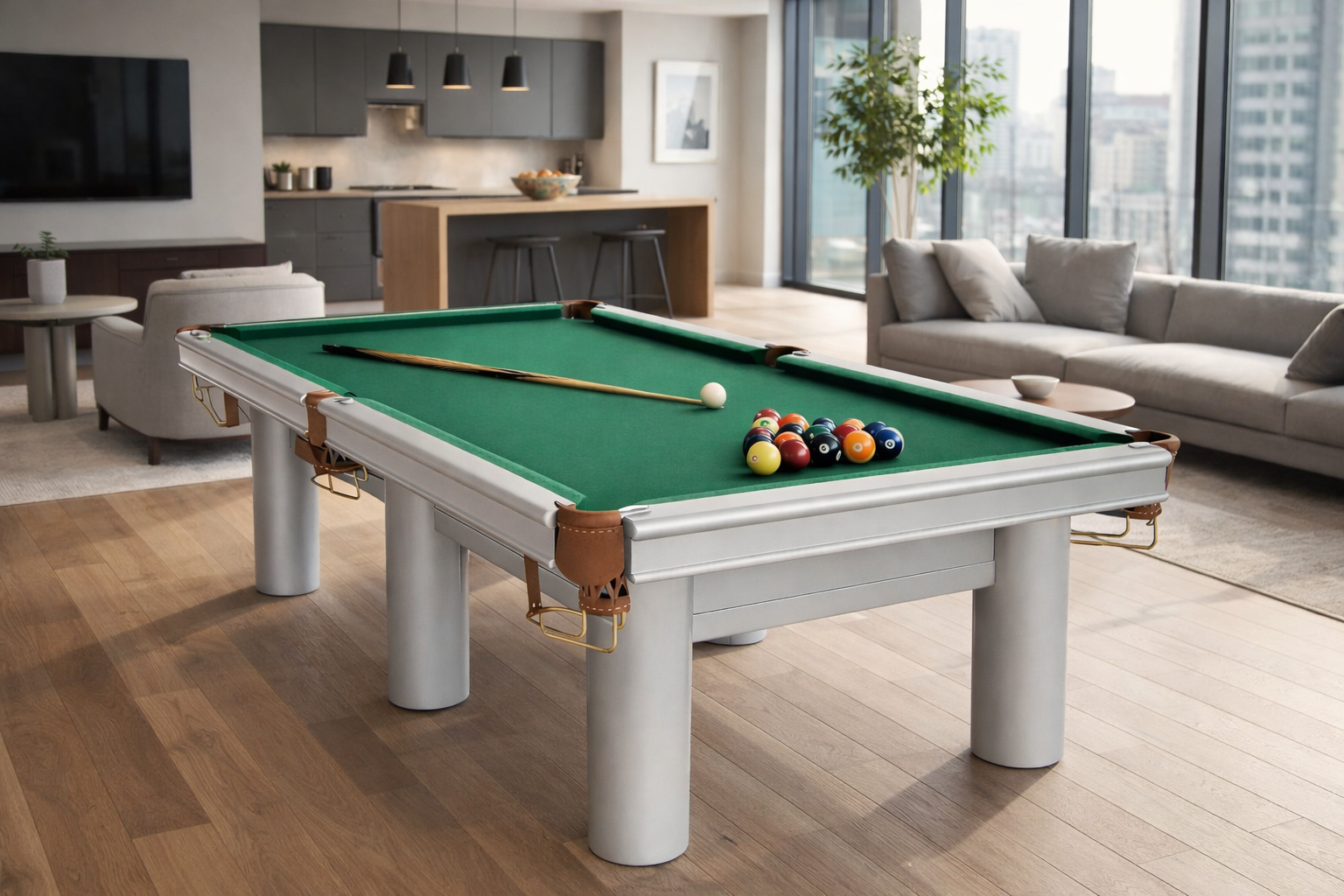 • Професійний клас для пулу. Стіл оснащений ігровим полем із натуральної ардезії та професійною бортовою гумою, оптимізованою для гри в пул, що забезпечує точний розкат і стабільний відскок куль.