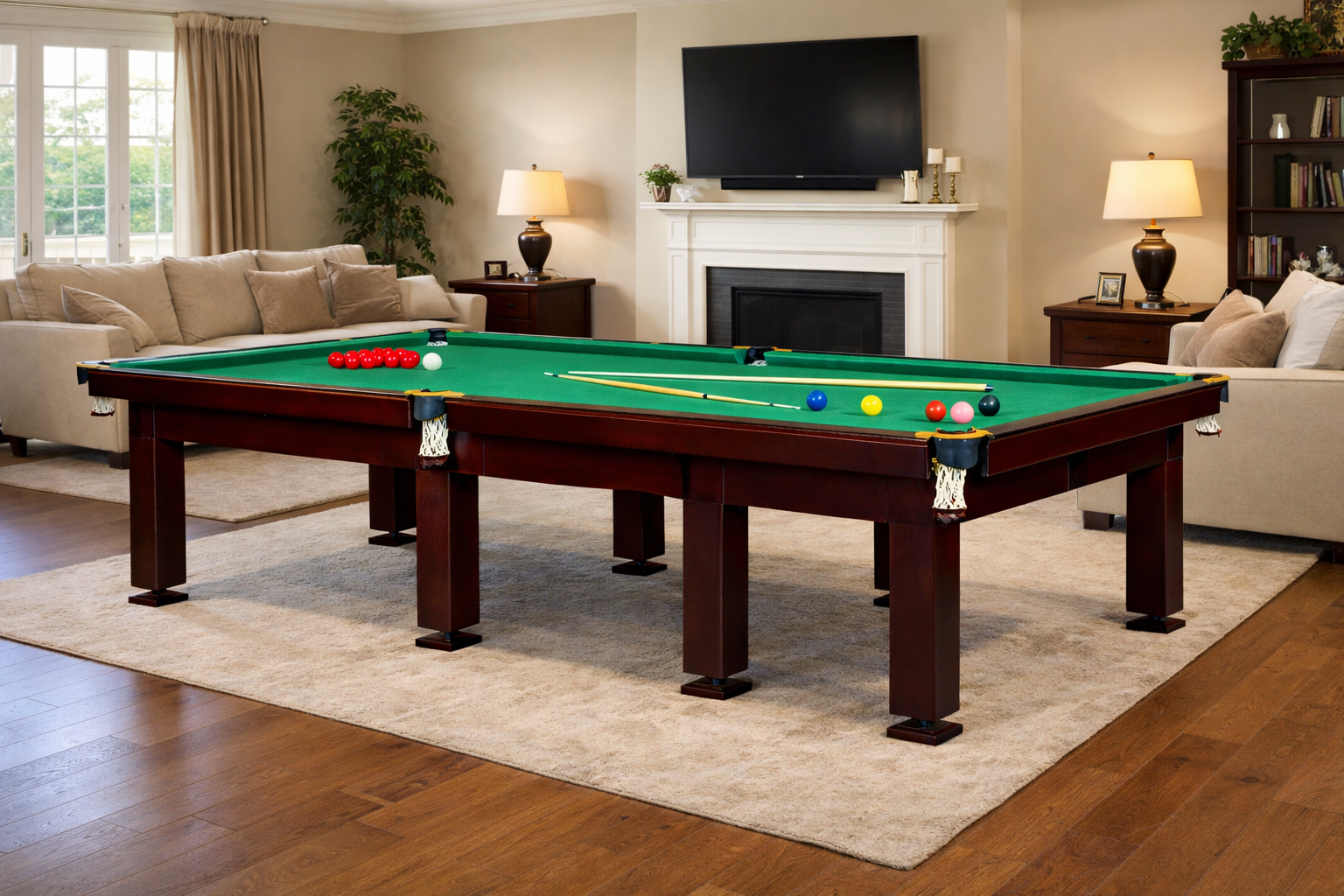 Лаконічний класичний стиль робить більярдний стіл Олімп універсальним рішенням як для домашнього інтер’єру, так і для комерційних просторів. Модель органічно виглядає в приватній ігровій кімнаті, вітальні, барі або зоні відпочинку.