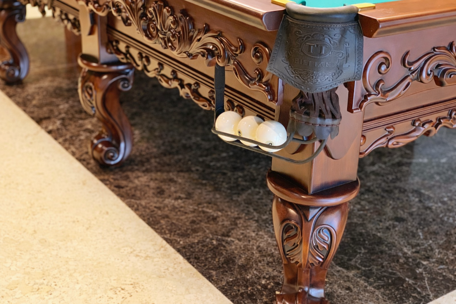 Більярдний стіл Royal укомплектований професійною гумою для піраміди, яка забезпечує м’який, точний і прогнозований відскок куль. Це дозволяє виконувати позиційну гру, контролювати швидкість і траєкторію руху куль та досягати максимальної точності ударів.