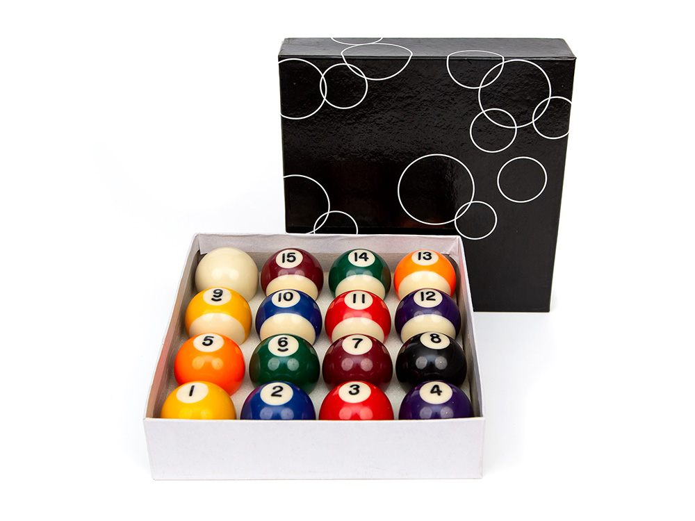 Рекомендується використовувати їх на столах з лузами, що відповідають діаметру 44 мм. Комплект постачається в картонній коробці розміром 21,5 x 21,5 x 5 см і важить 1,440 кг. У набір входить 16 куль, включаючи білий биток. Виготовлені в Китаї виробником Champion.