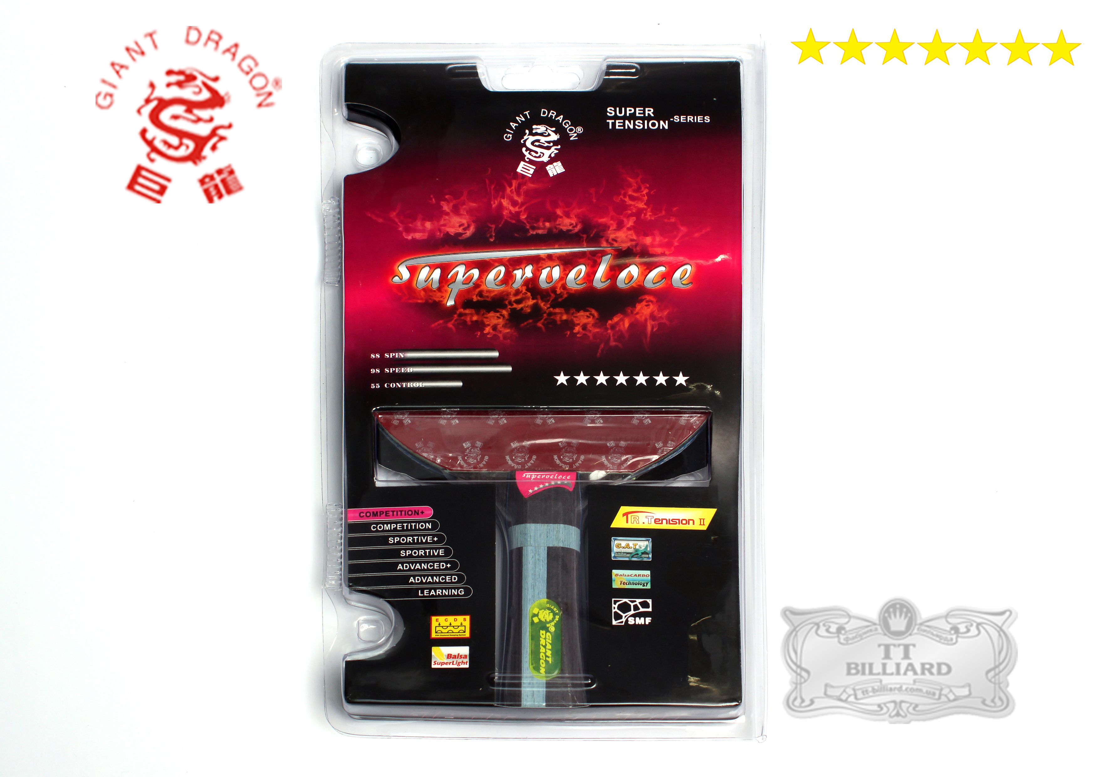Ракетка для настільного тенісу Superveloce 7* Giant Dragon