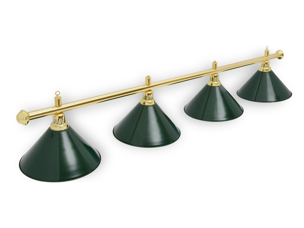 Світильник більярдний Evergreen (4 плафони) — класична лампа для більярдного столу, призначена для рівномірного освітлення ігрової поверхні. Чотири плафони забезпечують потужне направлене світло над столом, що дозволяє добре бачити кулі та комфортно контролювати гру. Внутрішнє відбивне покриття плафонів допомагає рівномірно розподіляти світло по всій поверхні столу.Для яких столів підходить:
